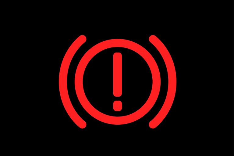 This light looks like a circle with an exclamation point in the center that’s surrounded by parentheses. This light can turn on if the driver tries to pull away with the emergency brake still engaged, or it could be a more serious problem with worn brake pads, low brake fluid, or other such issues. Braking is a crucial aspect of driving, so be mindful of this warning light and be sure to have your vehicle checked out by a service technician if the light turns on and you’re sure the emergency brake is off.